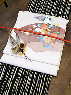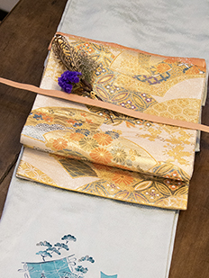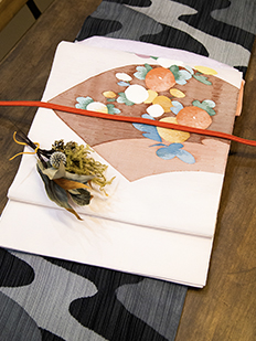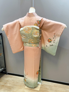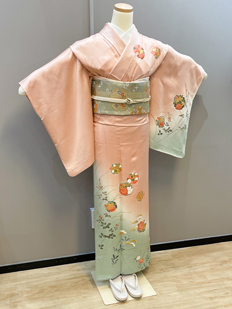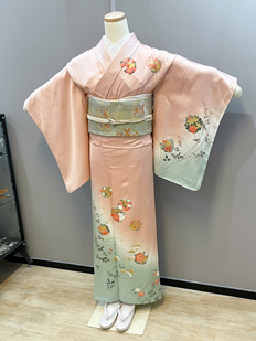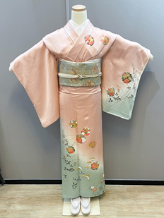 ピンク 色無地 松葉と菊