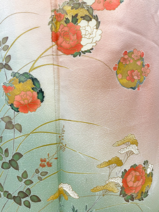 ピンク〜緑グラデ 花紋