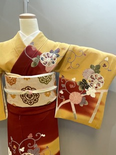 エンジ黄色ちりめん