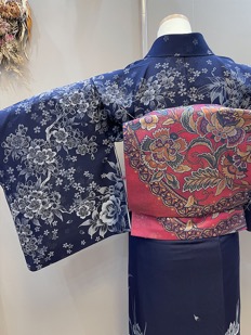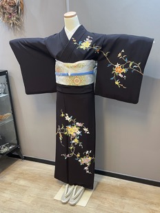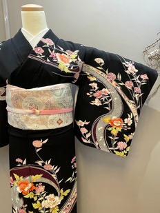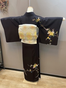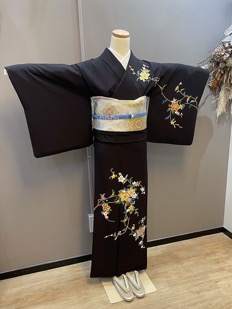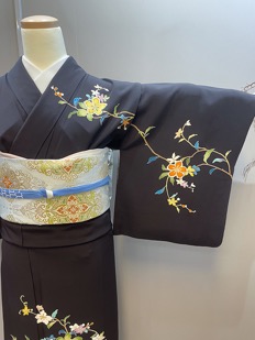 チャコール地花柄