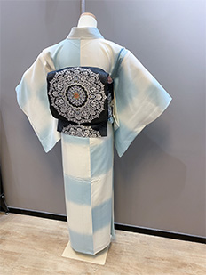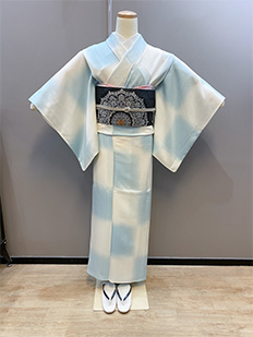 単衣水色市松