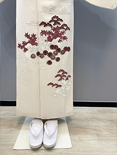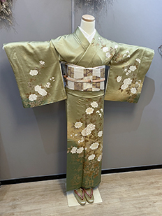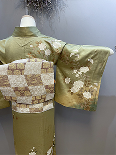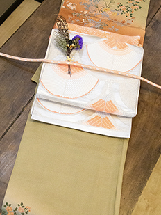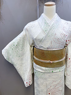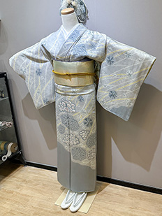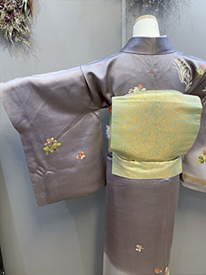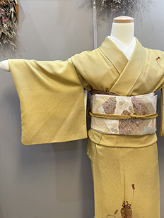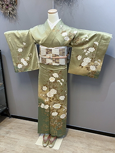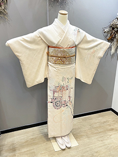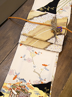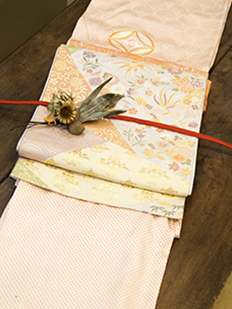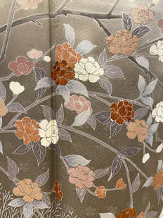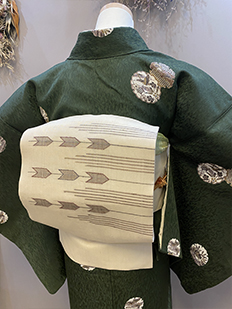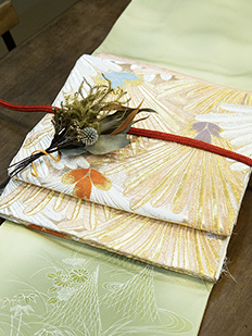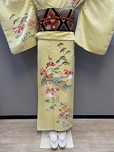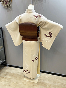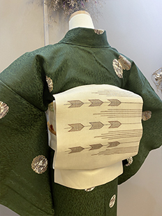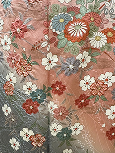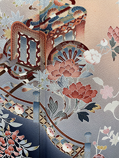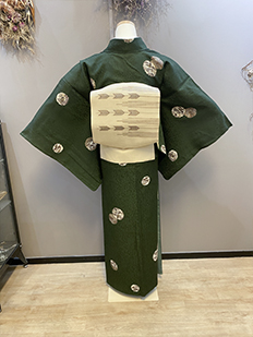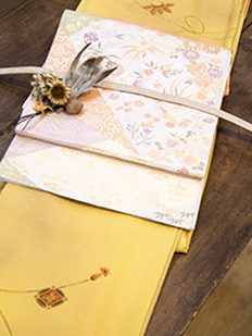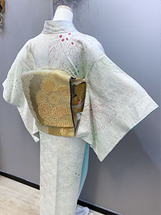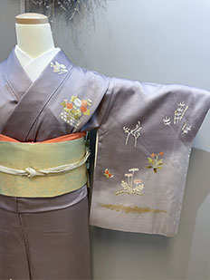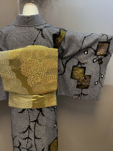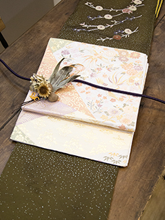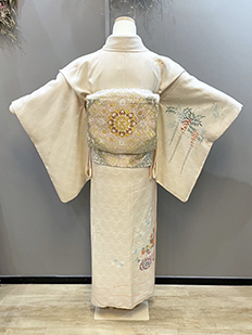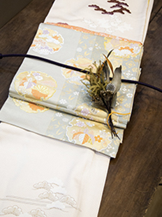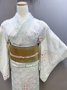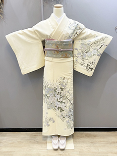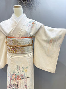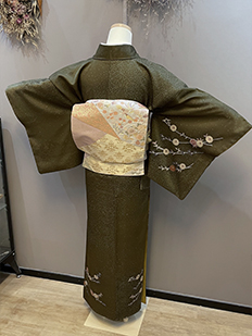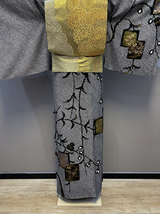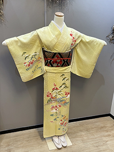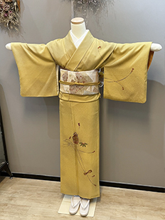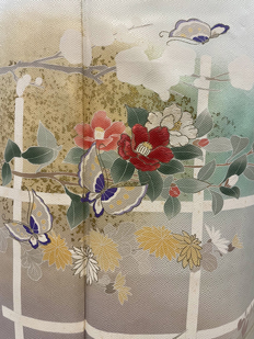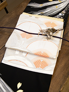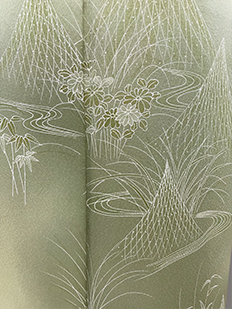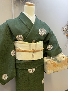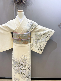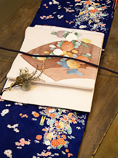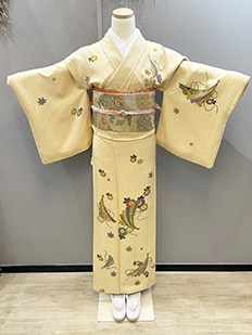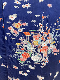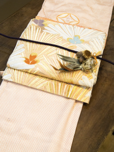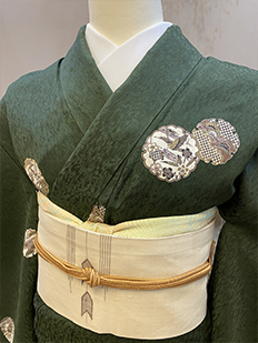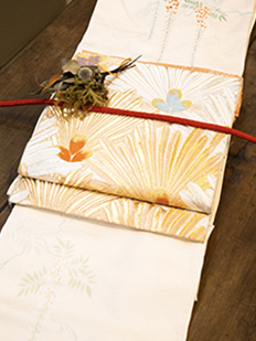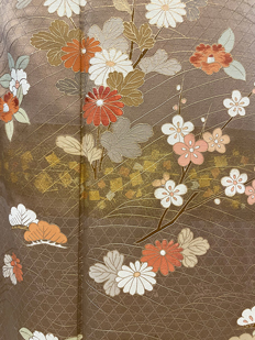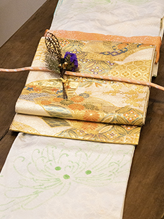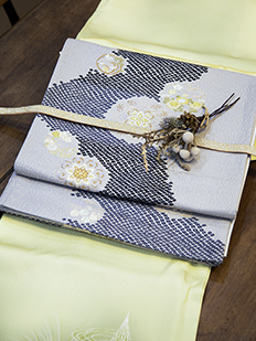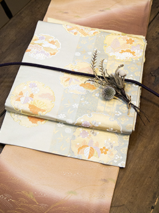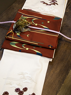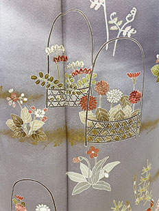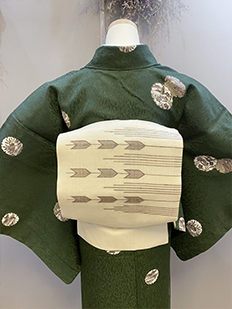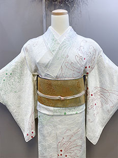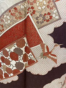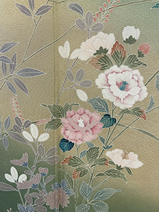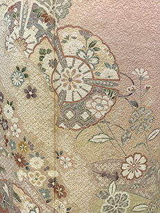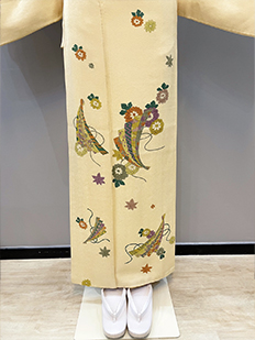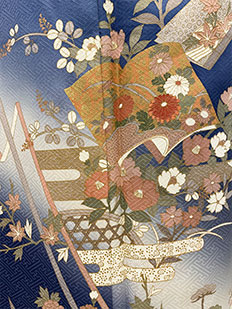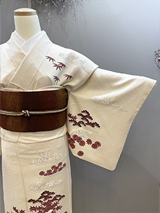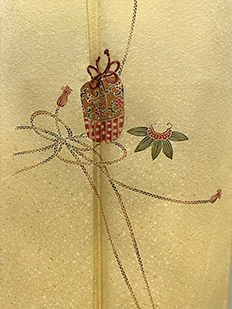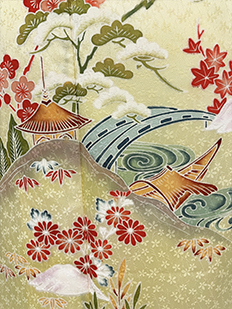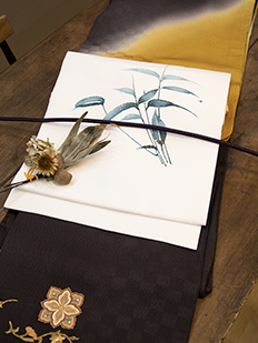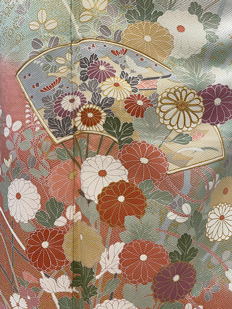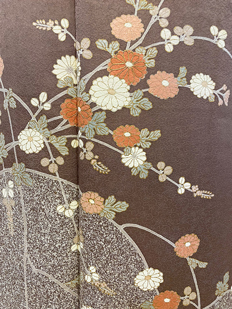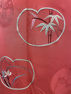刺繍円文に竹や菊