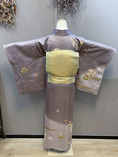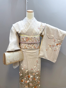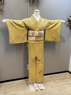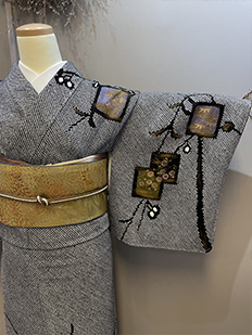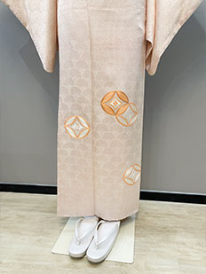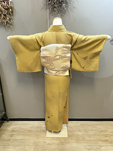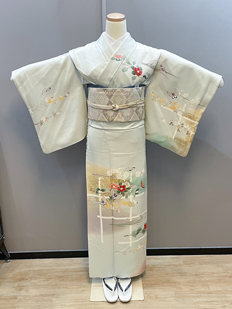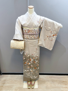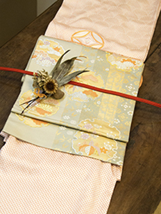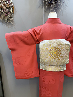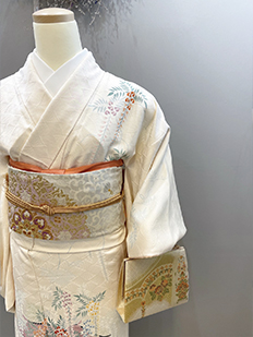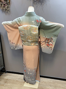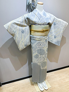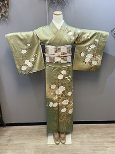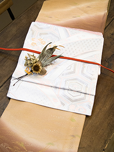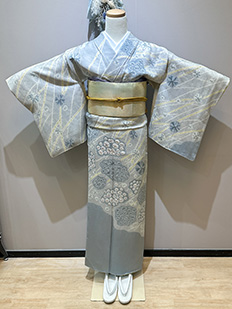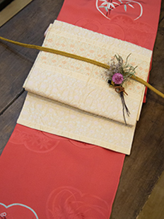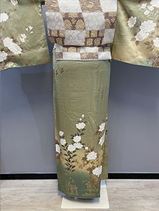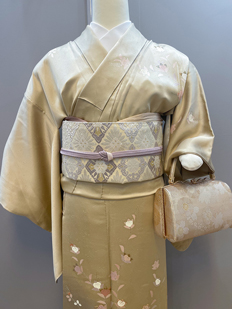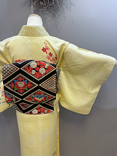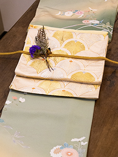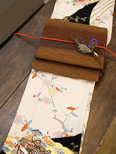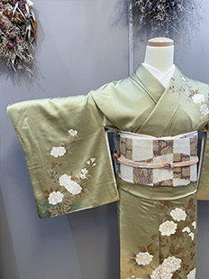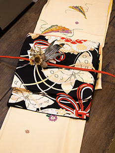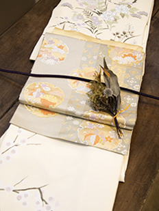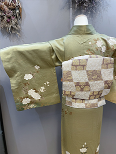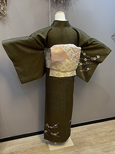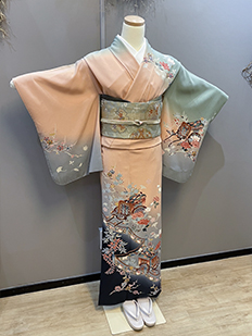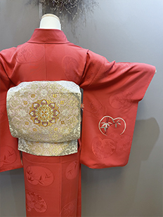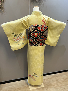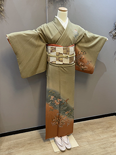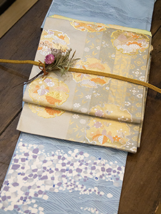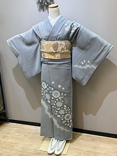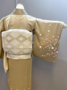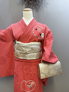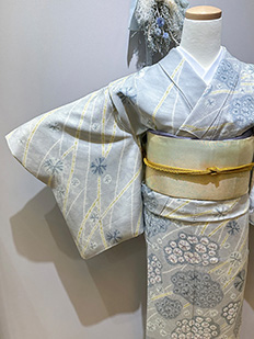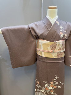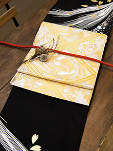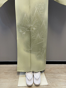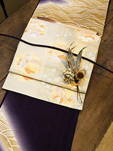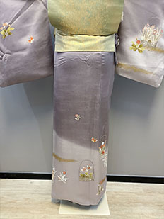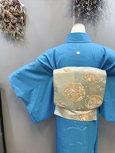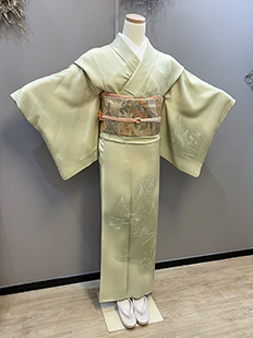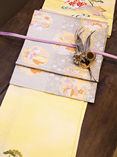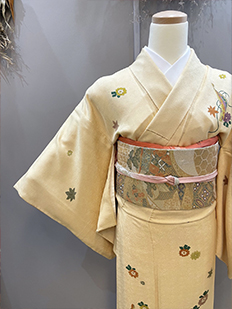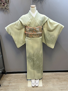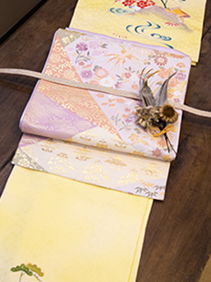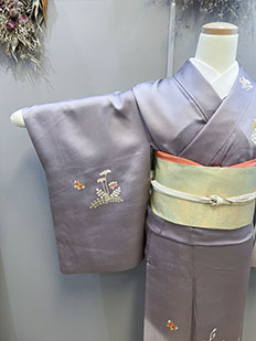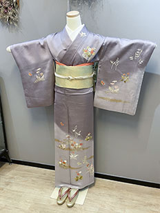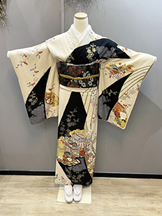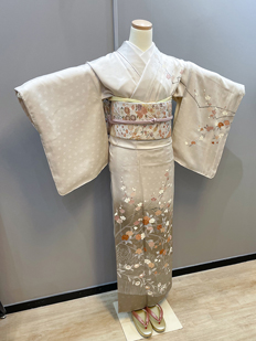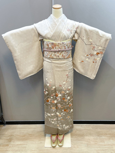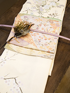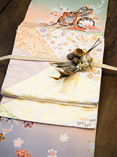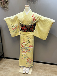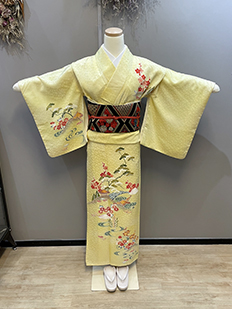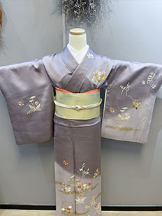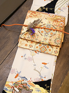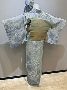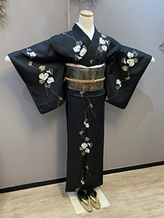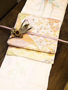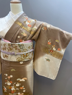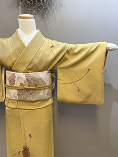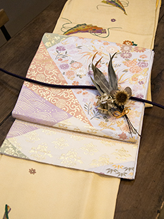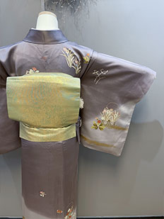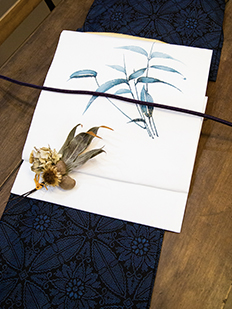 刺繍円文に竹や菊