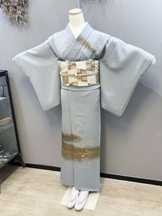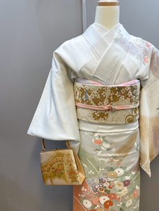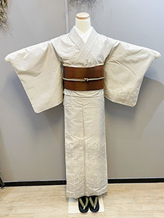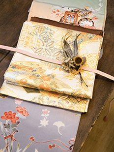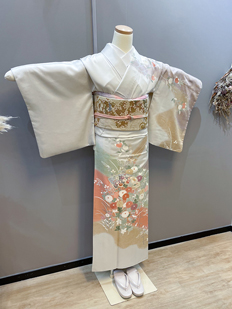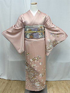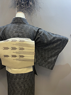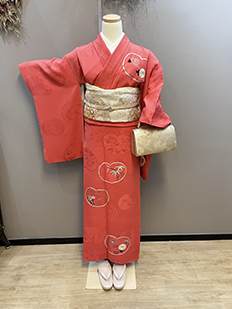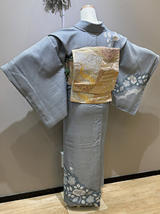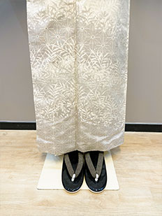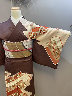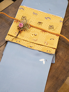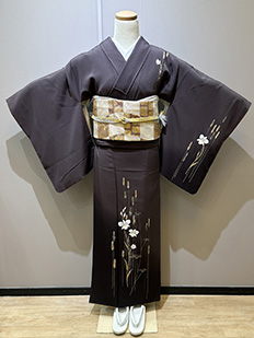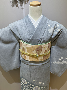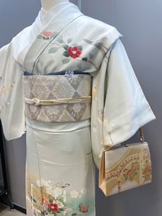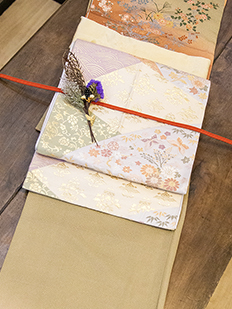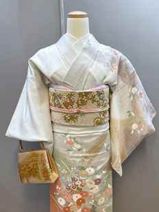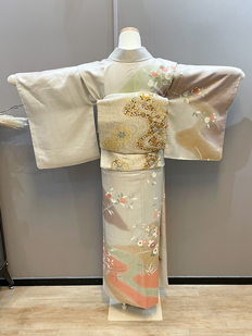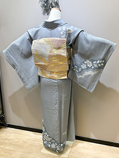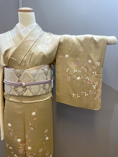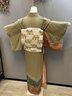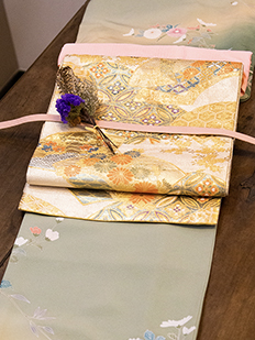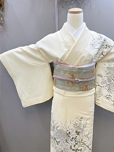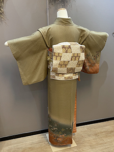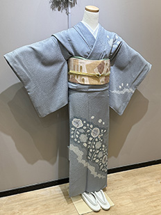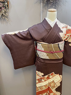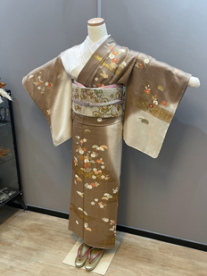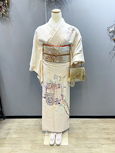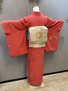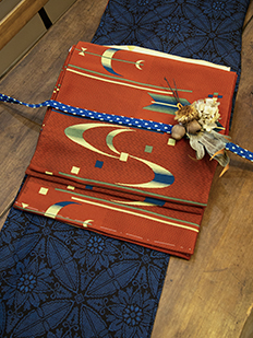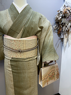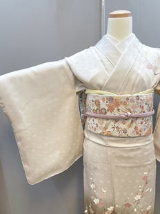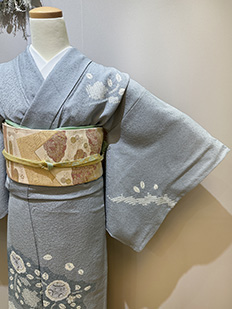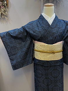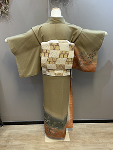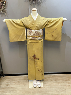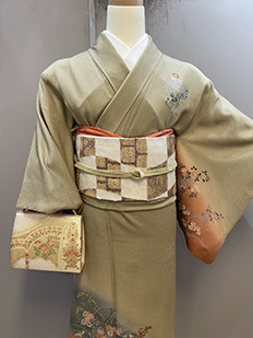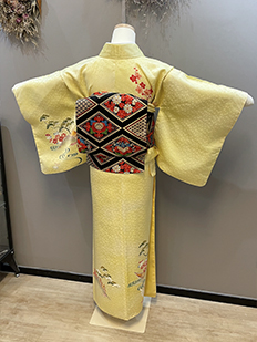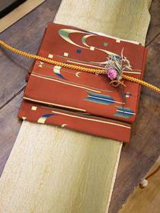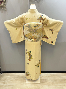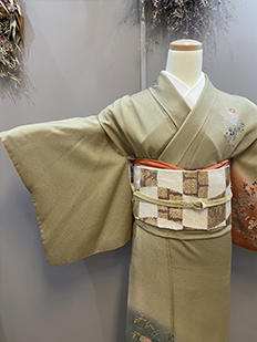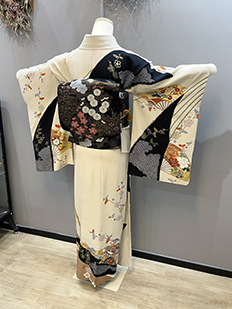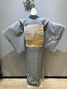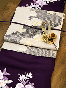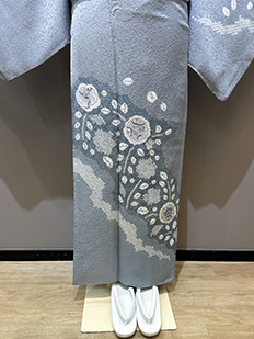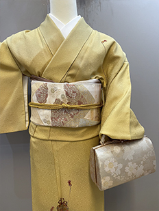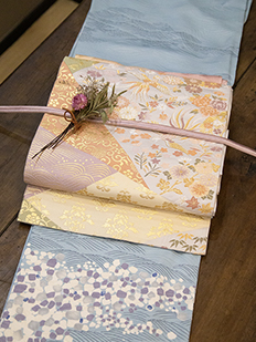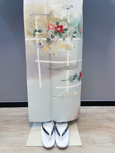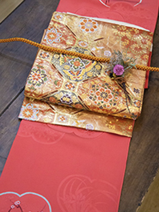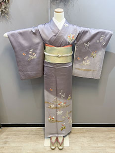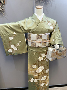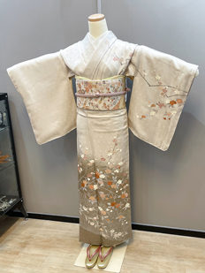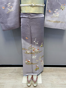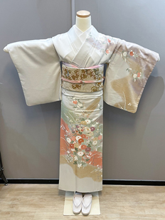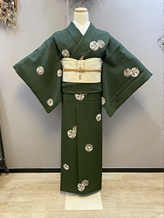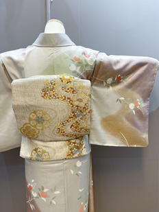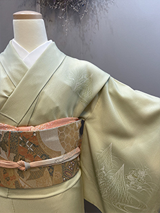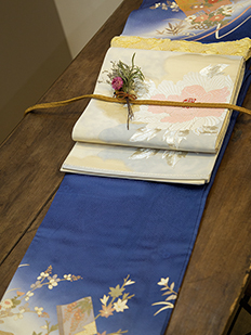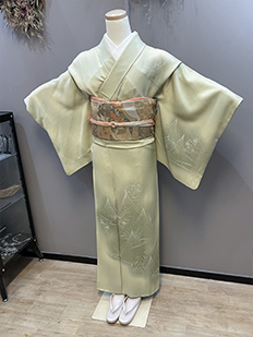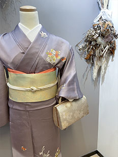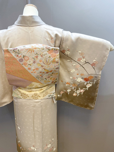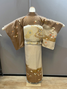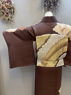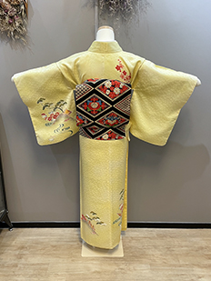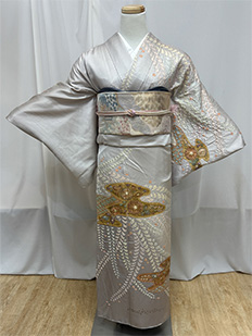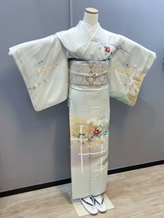 刺繍円文に竹や菊