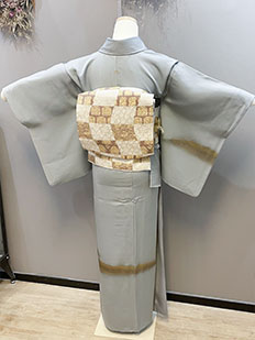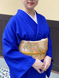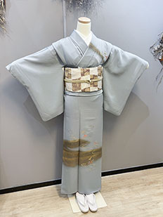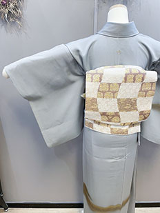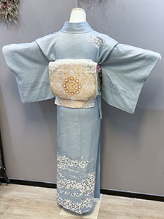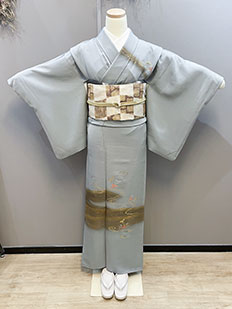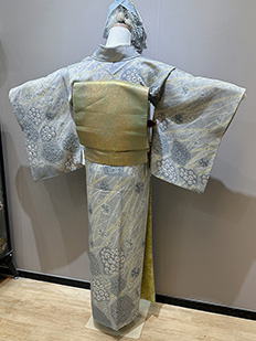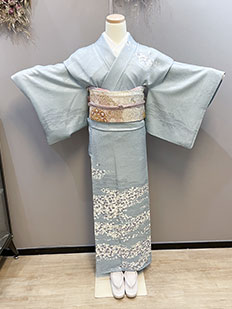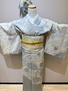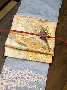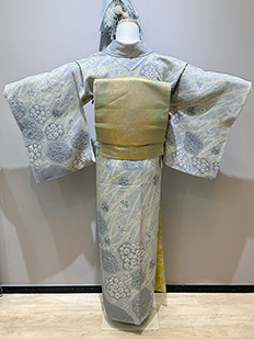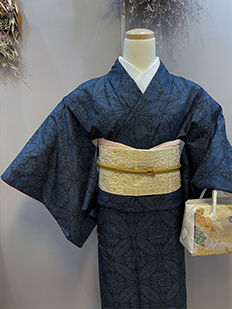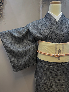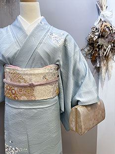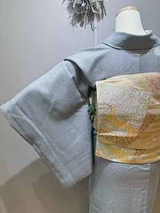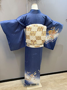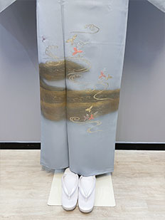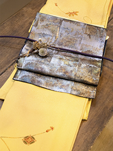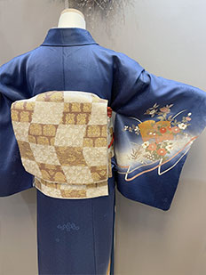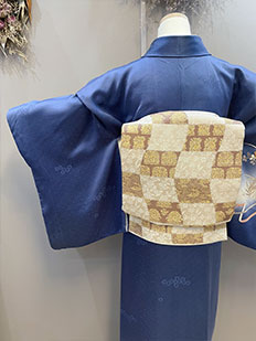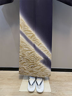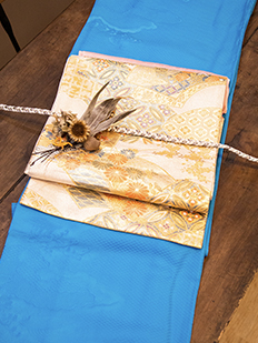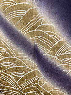 灰青 金刺繍 波模様