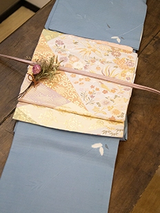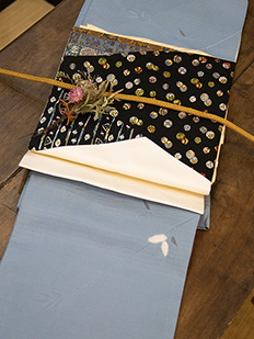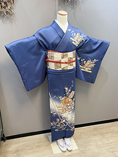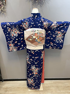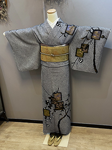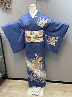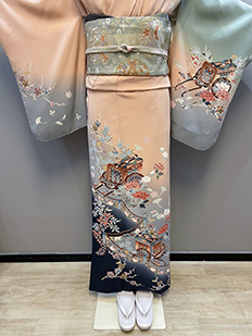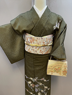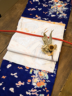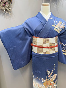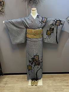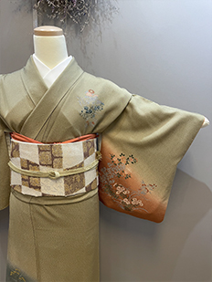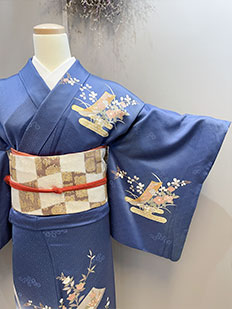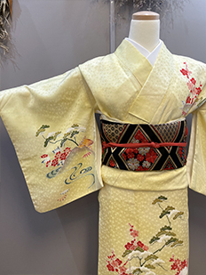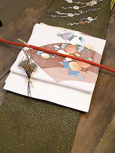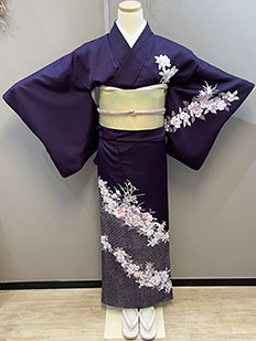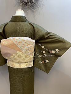 辻ヶ花に梅刺繍