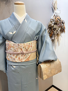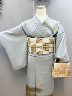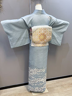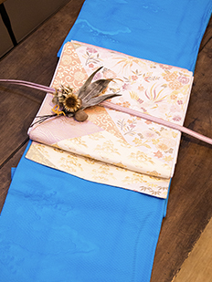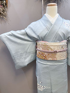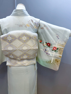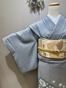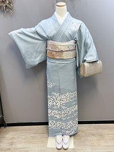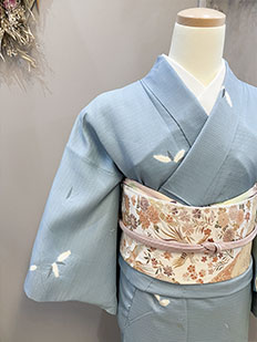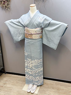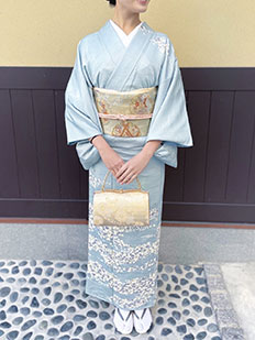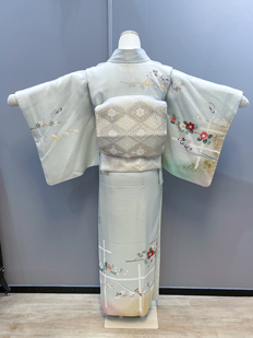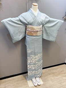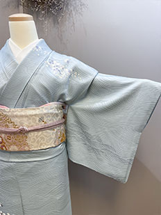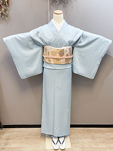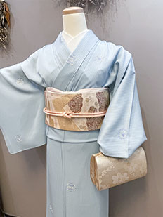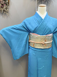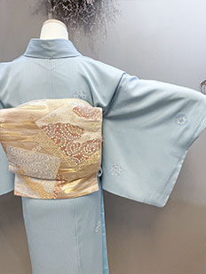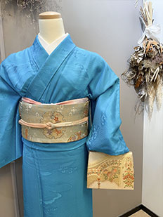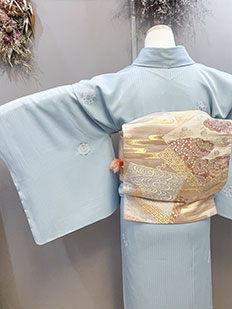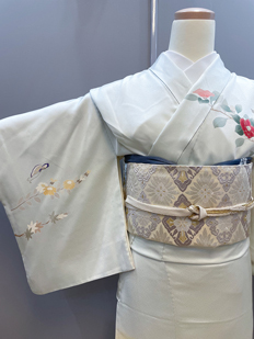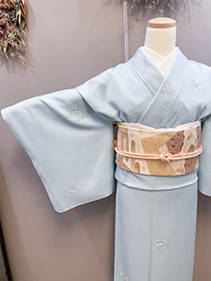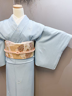 水色 色無地 花紋刺繍