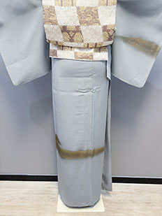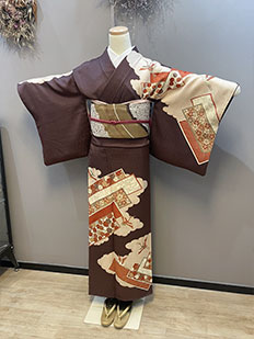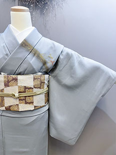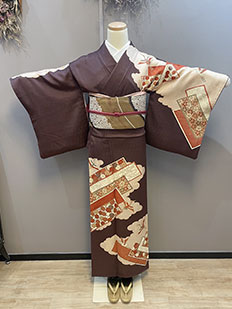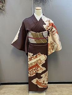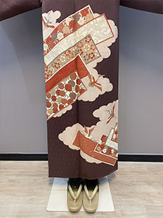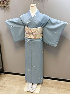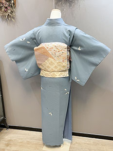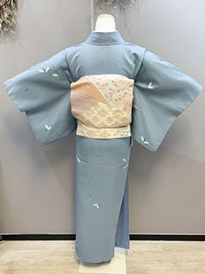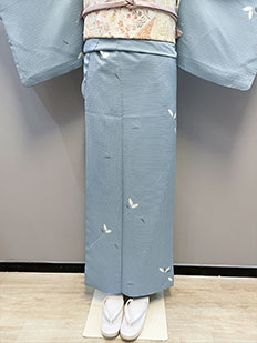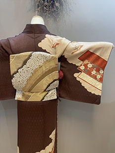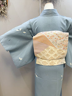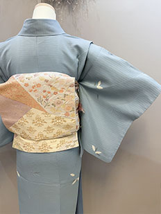 茶 熨斗目に鶴と雲