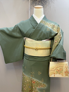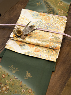 緑 金彩 総絞り
