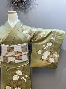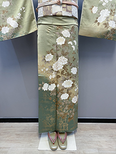緑〜ベージュグラデ 牡丹 南天