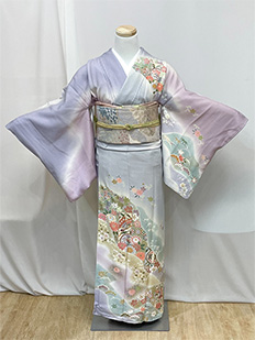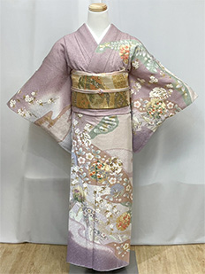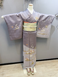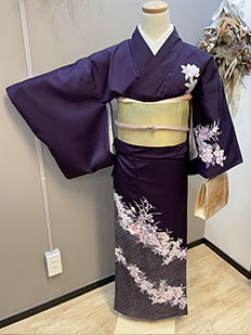 紫グラデ 菊に蝶