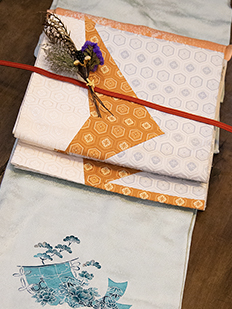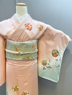ピンク 色無地 松葉と菊